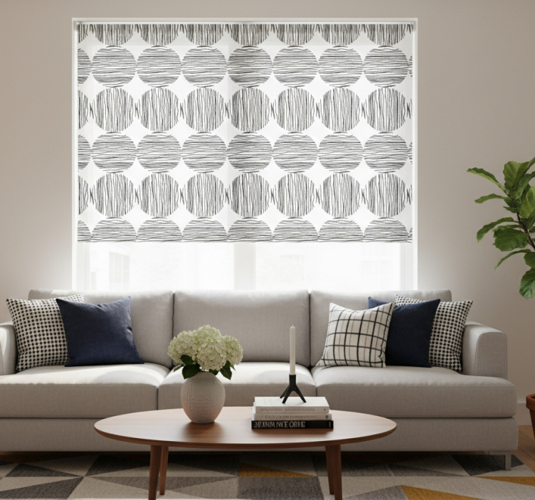 Met de moderne raambekleding cirkels met strepen binnenin moderne raambekleding voegt u niet alleen stijl toe aan uw ruimte, maar creëert u ook een gezellige sfeer. Deze rolgordijnen zijn ideaal om een statement te maken in uw interieur. Ze beschermen niet alleen tegen ongewenst zonlicht, maar bieden ook de privacy die u nodig heeft. Bovendien zijn ze verkrijgbaar in verschillende texturen, zodat u kunt kiezen op basis van uw persoonlijke voorkeuren voor lichtinval en privacy. Laat uw creativiteit de vrije loop en maak van uw raam een waar kunstwerk!