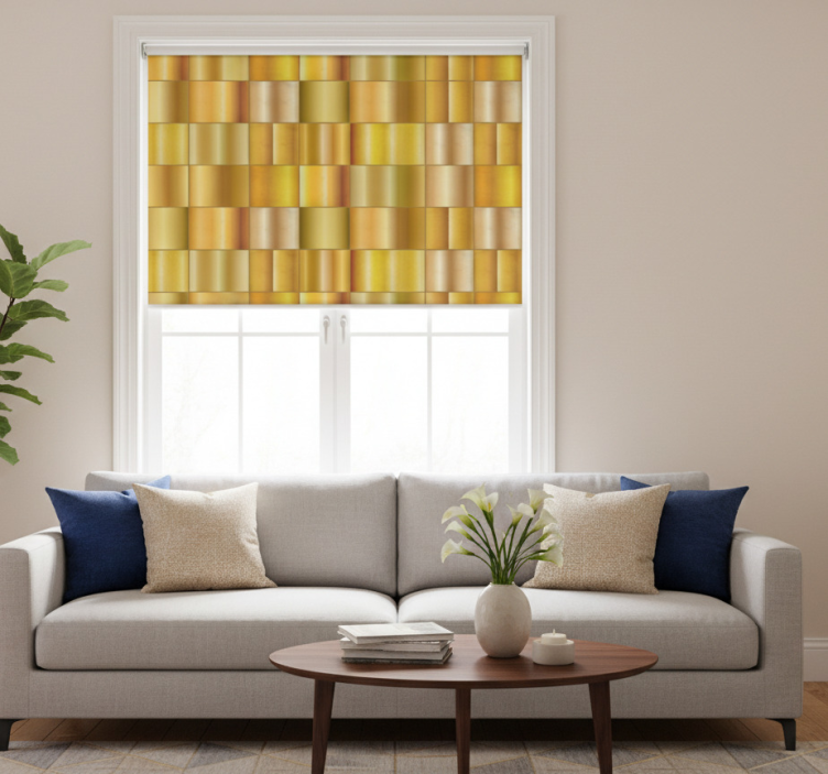 Onze moderne raambekleding gouden gele blokken is een schitterende aanvulling voor elk interieur. Het ontwerp kenmerkt zich door prachtige gouden en gele blokken die een frisse en levendige uitstraling geven aan uw ruimte. De combinatie van kleuren en geometrische vormen zorgt voor een grafisch geheel dat zowel stijlvol als trendy is. Dit rolgordijn is niet alleen een praktische oplossing voor het regelen van lichtinval, maar ook een echte eyecatcher die de sfeer in uw kamer aanzienlijk verbetert.