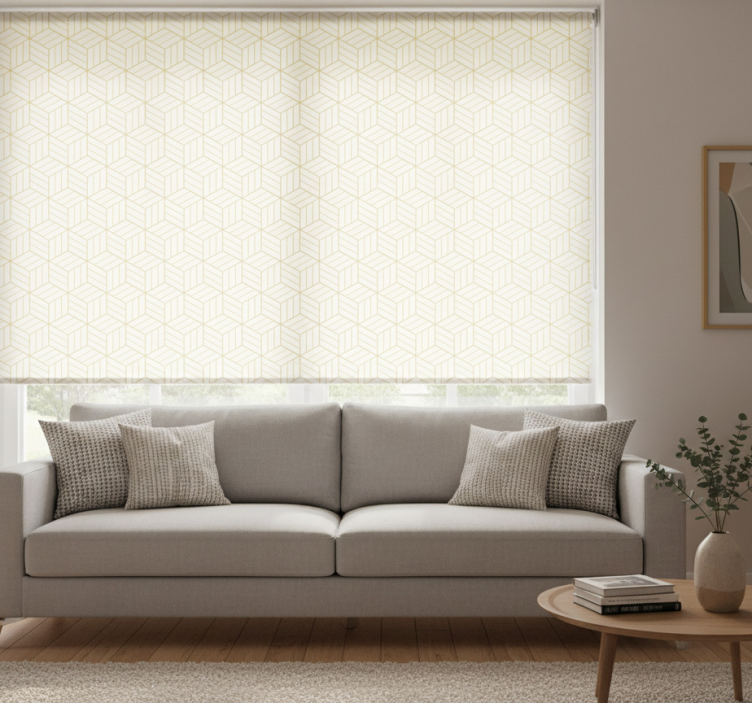Deze moderne raambekleding met gouden geometrische kubussen voegt een unieke en stijlvolle uitstraling toe aan uw interieur. Het grafische ontwerp van gouden kubussen, dat subtiel op de stof is verwerkt, creëert een dynamisch effect dat elke ruimte transformeert. De combinatie van geometrische vormen en moderne kleuren zorgt ervoor dat deze raambekleding niet alleen functioneel is, maar ook een statement maakt in uw huis!
