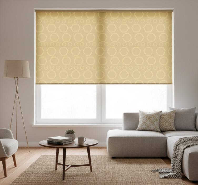 Ontdek onze moderne raambekleding met gouden hexagonpatronen, een prachtig ontwerp dat een eigentijdse uitstraling aan elke kamer geeft. Dit rolgordijn is voorzien van een schitterend hexagonpatroon in gouden tinten, waardoor het een luxe en verfijnde touch biedt. De geometrische vormen in combinatie met de goudkleur zorgen voor een visueel spektakel dat perfect aansluit bij moderne interieurstijlen. Dit product is niet alleen esthetisch aantrekkelijk, maar ook functioneel, met een eenvoudige installatie en onderhoudsgemak.