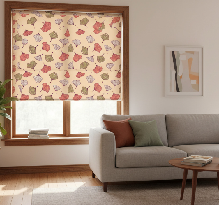 Referentienummer: E7670Moderne raambekleding met kleurrijke ginkgo bladeren