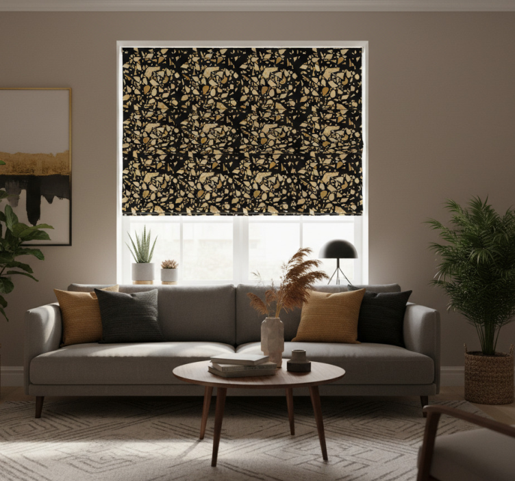 De moderne raambekleding terrazzo stijl zwart goud moderne raambekleding is meer dan alleen een functioneel item; het is een statement in uw interieur! Door de unieke uitstraling en het vermogen om licht en schaduw te spelen, voegt dit rolgordijn karakter toe aan elke ruimte. Het is een fantastische manier om uw persoonlijke stijl te tonen en tegelijkertijd een gevoel van stijl en luxe te creëren. Laat uw creativiteit de vrije loop en transformeer uw kamer met deze prachtige raambekleding!
