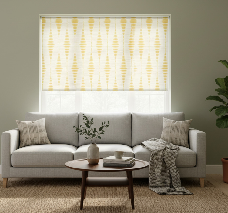 Het ontwerp van onze moderne raambekleding yellow rabaul ikat is een ware blikvanger! Met zijn unieke ikat-patroon in warme gele tinten, geeft het een frisse en eigentijdse uitstraling aan elke ruimte. De grafische elementen creëren een speelse dynamiek die zowel stijlvol als uitnodigend is. Dit rolgordijn is niet alleen een functionele oplossing voor zonwering, maar ook een creatief statement dat uw interieur naar een hoger niveau tilt.