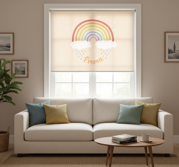 Rolgordijn beige waterverf regenboog met naam