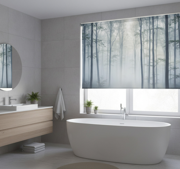 Rolgordijn bomen atmosferische mist muurschildering