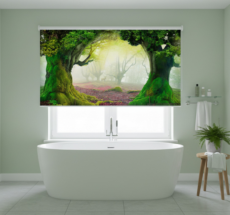 Rolgordijn bomen poort naar het eeuwige bos