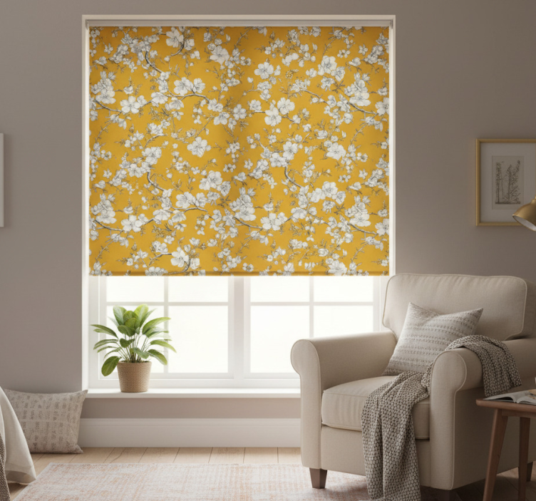 Rolgordijn geel met bloemig vintage patroon