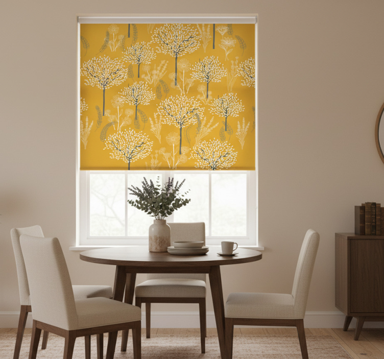 Rolgordijn geel met bomenpatroon