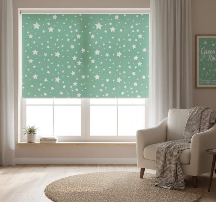 Dit prachtige rolgordijn met een ontwerp van groene sterren rond op een levendige achtergrond geeft uw interieur een speelse en frisse uitstraling! Het biedt niet alleen een unieke decoratieve flair, maar ook functionaliteit. De sterren zijn subtiel en stijlvol, waardoor het perfect is voor zowel kinderkamers als moderne woonruimtes. Het rolgordijn beschermt uw kamer tegen direct zonlicht en biedt tegelijkertijd de privacy die u wenst!