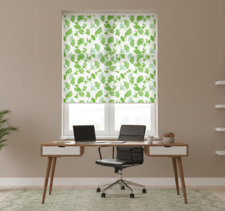 Breng de natuur in uw kantoor met ons rolgordijn kantoor groene ginkgo bladeren. Dit prachtige ontwerp toont een weelderige groene ginkgo bladerenprint, die een gevoel van rust en harmonie creëert in uw werkomgeving. De grafische details zijn zorgvuldig samengesteld om een levendig en inspirerend uitzicht te bieden, waardoor u zich kunt concentreren en ontspannen tegelijkertijd. Het rolgordijn is niet alleen functioneel, maar ook een echte eyecatcher die elke ruimte verrijkt!