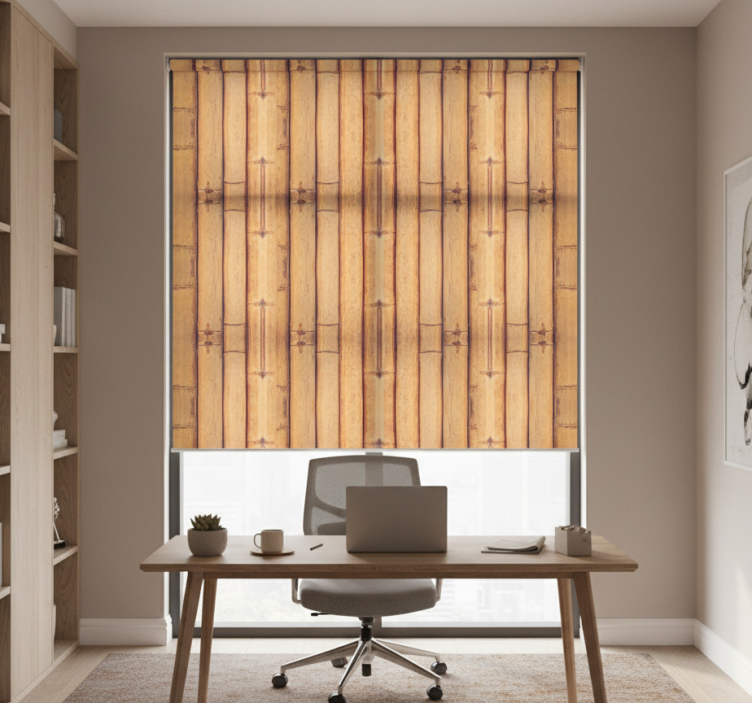 Rolgordijn kantoor met bamboe houtstructuur effect