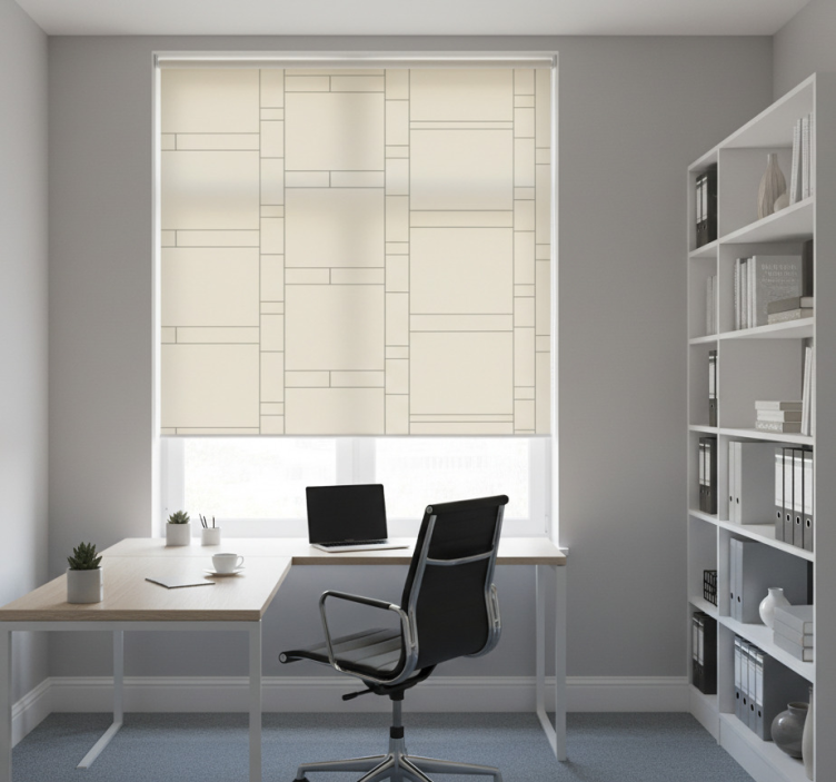 Rolgordijn kantoor met eigentijds blokpatroon