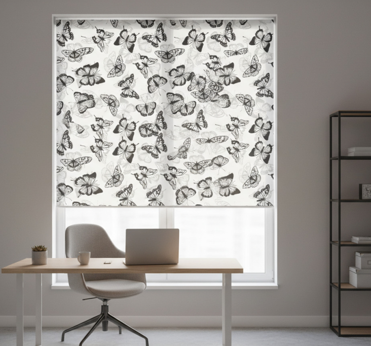 Rolgordijn kantoor zwart delicaat vlinderpatroon