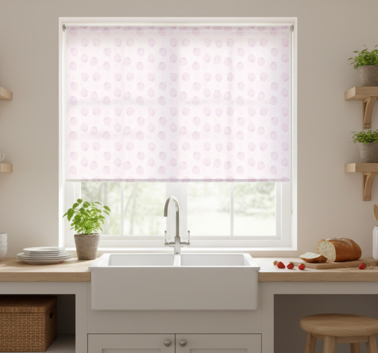 Referentienummer: E6430Rolgordijn keuken aardbeienpatroon op roze