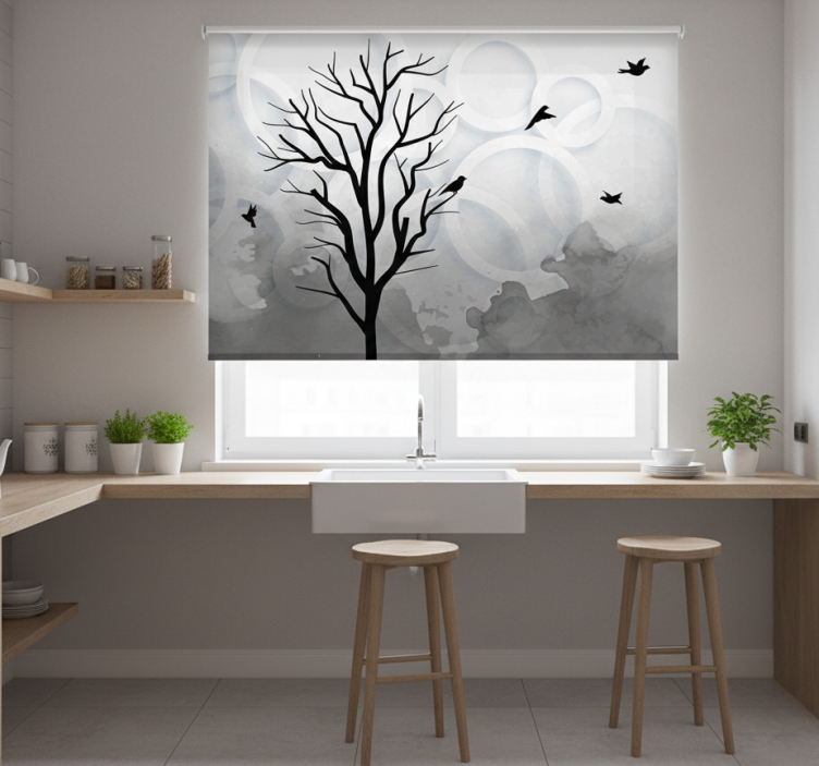 Rolgordijn keuken artistieke stijl zwarte boom met vogels
