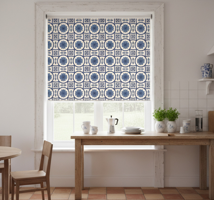 Dit rolgordijn keuken blauwe bloem typisch portugees tegel biedt een prachtig visueel statement voor uw keuken. Het ontwerp is geïnspireerd op de traditionele Portugese tegels, met een betoverend patroon van blauwe bloemen dat een gevoel van elegantie en charme toevoegt aan elke ruimte. De combinatie van levendige kleuren en gedetailleerde motieven zorgt voor een unieke uitstraling die uw keuken zeker zal verfraaien. Dit rolgordijn is niet alleen een praktische oplossing voor privacy, maar ook een stijlvol accessoire dat de sfeer van uw keuken compleet maakt!