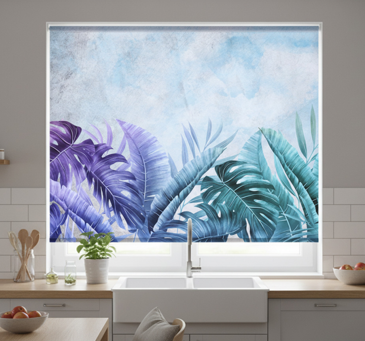 Rolgordijn keuken blauwe en paarse tropische planten