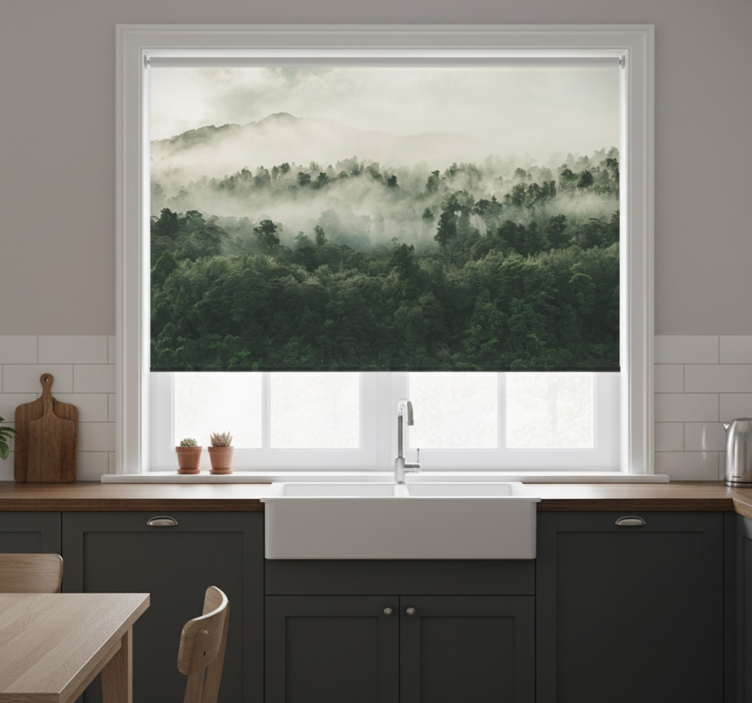 Het Rolgordijn keuken bos met mist van boven rolgordijn keuken is meer dan alleen een praktische oplossing; het is een essentieel onderdeel van uw interieurdesign. Dit rolgordijn voegt een artistieke flair toe aan uw keuken, waardoor het een warmere en uitnodigende uitstraling krijgt. Het ontwerp inspireert en creëert een harmonieuze sfeer, perfect voor het bereiden van maaltijden of het genieten van een kopje koffie. Door de combinatie van functionaliteit en esthetiek, is dit rolgordijn een must-have decoratief element!