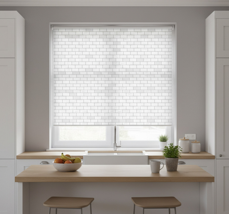 Het rolgordijn keuken elegant baksteenpatroon is een ware eyecatcher in uw interieur! Met zijn stijlvolle baksteenpatroon voegt dit rolgordijn een moderne en warme uitstraling toe aan elke keuken. Het ontwerp is niet alleen visueel aantrekkelijk, maar biedt ook functionaliteit. Het beschermt de ruimte tegen direct zonlicht, waardoor u op elk moment van de dag van uw keuken kunt genieten zonder hinderlijke schitteringen. Bovendien creëert het een gevoel van privacy wanneer het omlaag is, wat het perfect maakt voor een gezellige keuken waar u zich op uw gemak wilt voelen. Dit rolgordijn tilde de decoratie van uw keuken naar een hoger niveau, terwijl het ook de temperatuur in de kamer reguleert! Maak uw keuken compleet met dit prachtige rolgordijn!