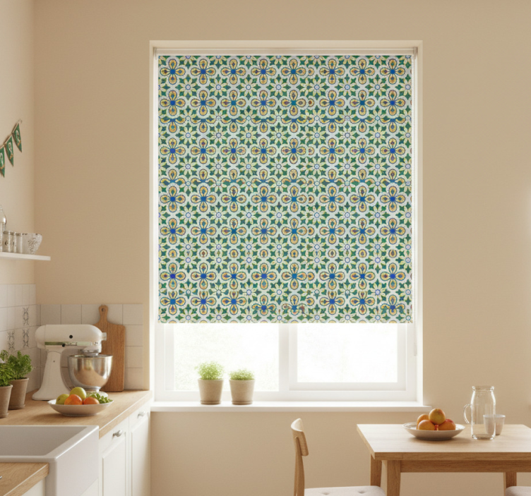 Een rolgordijn keuken gele en blauwe portugese tegel rolgordijn keuken is een must-have voor elke moderne keuken! Het voegt niet alleen kleur en karakter toe, maar helpt ook bij het reguleren van de lichtinval. Dit rolgordijn biedt privacy wanneer nodig, terwijl het tegelijkertijd een gevoel van ruimte en openheid behoudt. Het is een stijlvolle manier om uw interieur te verfraaien en de algehele uitstraling van uw keuken te verbeteren. Laat uw creativiteit de vrije loop en maak van uw keuken een plek waar u graag tijd doorbrengt!