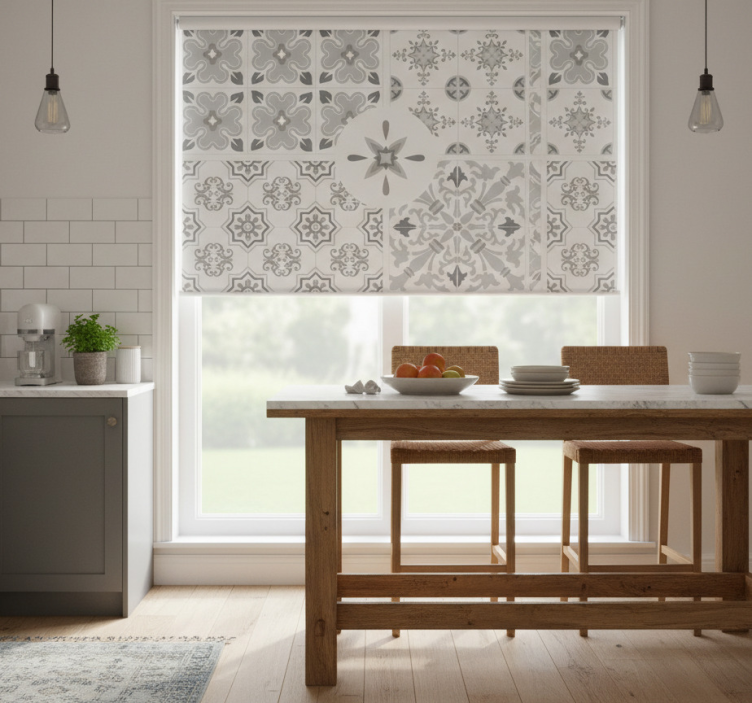Rolgordijn keuken grijze mozaïektegels