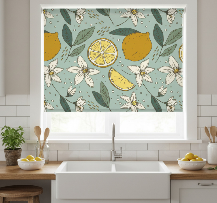 Rolgordijn keuken kleurrijk citroenpatroon