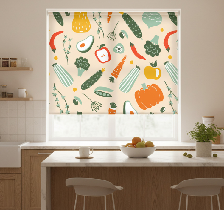 Een rolgordijn keuken kleurrijk verschillend voedsel rolgordijn keuken is niet alleen functioneel; het is ook een geweldige manier om uw keuken op te fleuren. Dit rolgordijn combineert stijl met functionaliteit en biedt een unieke decoratieve oplossing die elke keuken kan transformeren. Het kleurrijke ontwerp voegt een vrolijke sfeer toe, waardoor koken en eten nog leuker wordt! Met dit rolgordijn kunt u eenvoudig een persoonlijke touch aan uw keuken geven en tegelijkertijd genieten van de voordelen van privacy en lichtbeheersing.