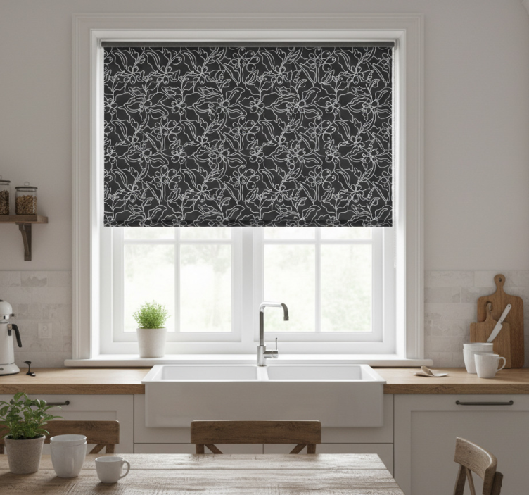 Rolgordijn keuken koffie kunstlijn elegant patroon