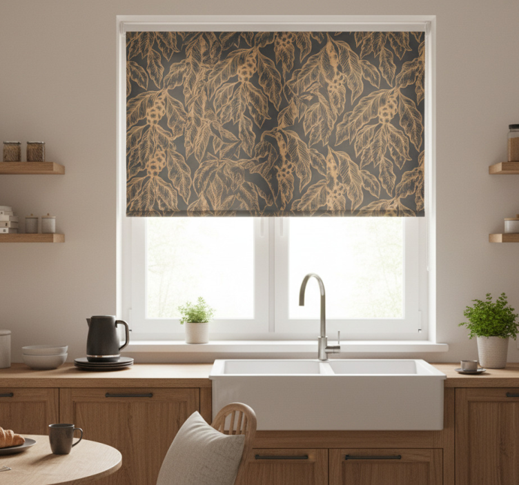 Voeg een vleugje natuurlijke schoonheid toe aan uw keuken met ons rolgordijn keuken koffieboom takkenpatroon. Dit unieke ontwerp, dat de charme van koffieboomtakken prachtig weergeeft, creëert een warme en uitnodigende sfeer. Het harmonieuze samenspel van kleuren en vormen zorgt ervoor dat uw keuken niet alleen functioneel, maar ook visueel aantrekkelijk is. Met dit rolgordijn haalt u de natuur in huis, perfect voor elke levensstijl!