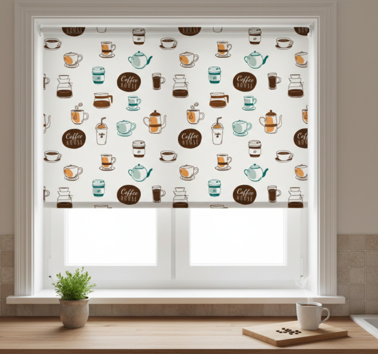 Referentienummer: E6478Rolgordijn keuken koffiehuis cafe patroon