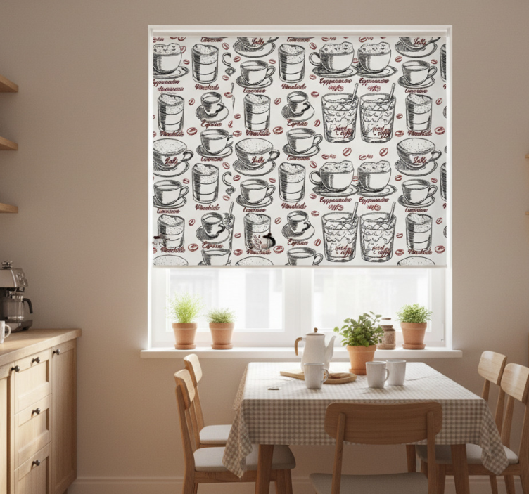 Rolgordijn keuken koffiepatroon tekst