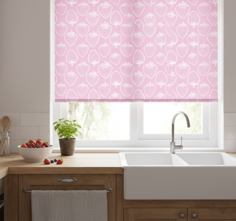 Dit rolgordijn keuken naadloos roze aardbei cadeaupapier patroon is een echte blikvanger in elke keuken! Het vrolijke ontwerp, geïnspireerd op de frisse kleur van aardbeien en de speelse uitstraling van cadeaupapier, brengt levendigheid en charme in uw ruimte. Dit rolgordijn is perfect voor het creëren van een warme en uitnodigende sfeer, terwijl het ook functionele voordelen biedt. Het beschermt uw kamer tegen direct zonlicht, biedt privacy en helpt de kamertemperatuur te reguleren, waardoor het een veelzijdige keuze is voor iedere keuken.
