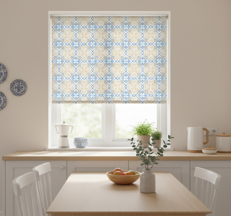 Rolgordijn keuken portugese tegelpatroon blauwe lijnen
