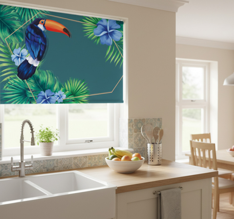 Een rolgordijn keuken toucan tropische bladeren rolgordijn is een perfecte keuze om een vleugje natuur in uw interieur te brengen. Het vrolijke ontwerp van tropische bladeren en de speelse toucan zorgt voor een unieke sfeer die de creativiteit in uw keuken stimuleert. Dit rolgordijn helpt niet alleen bij het reguleren van de temperatuur, maar het voegt ook een artistiek element toe aan uw decoratie! Laat uw keuken stralen met deze opvallende toevoeging en geniet van de combinatie van functionaliteit en stijl!