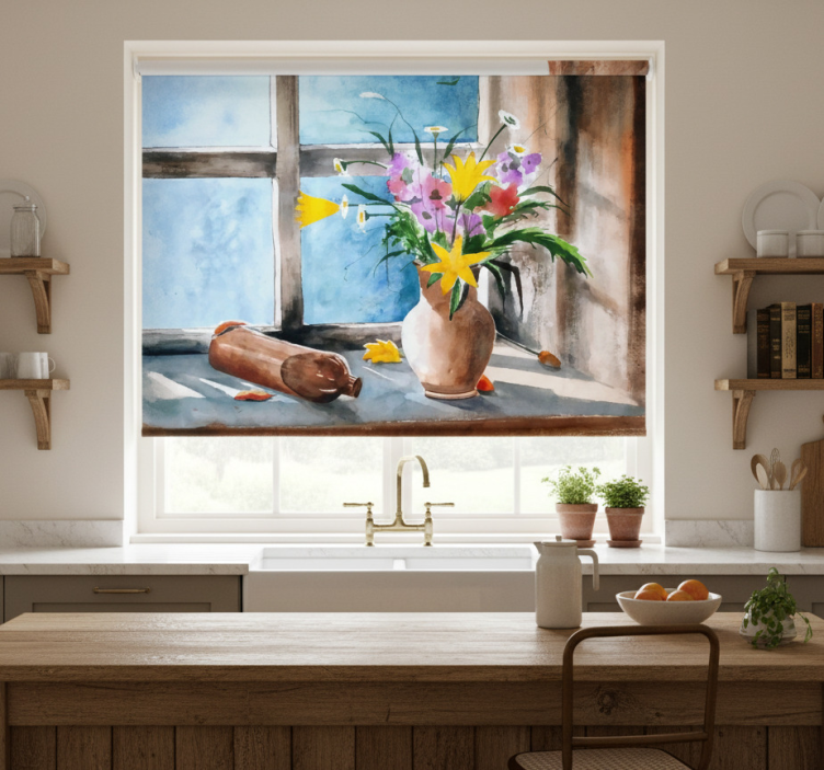Rolgordijn keuken vintage planten
