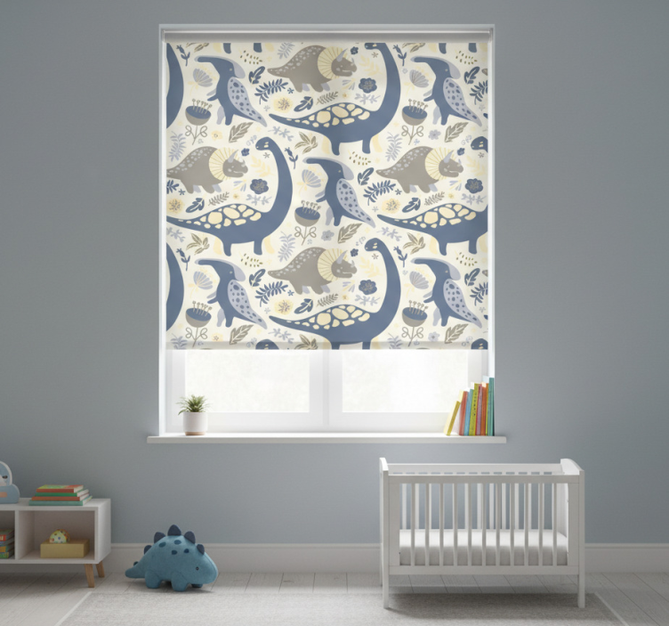 Rolgordijn kinderkamer blauwe dinosaurussen nordic stijl