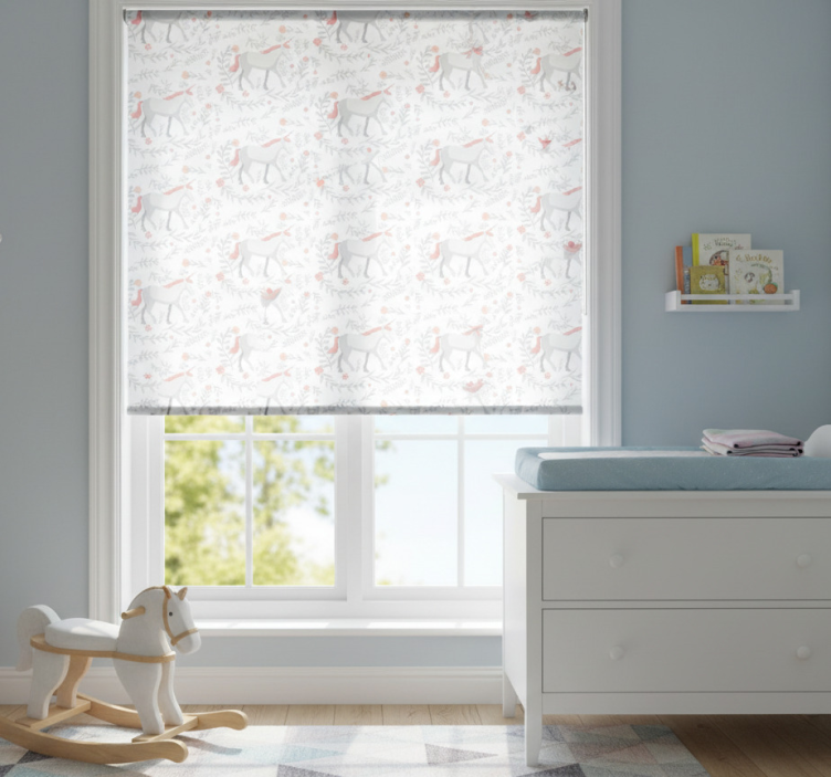Rolgordijn kinderkamer eenhoorn patroon met bladeren