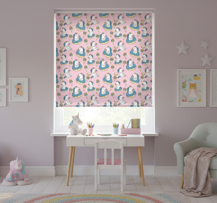 Rolgordijn kinderkamer eenhoorns en ijsjes op roze achtergrond