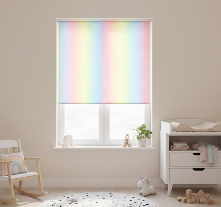 Referentienummer: E7241Rolgordijn kinderkamer glitter regenboog lucht pastel kleuren
