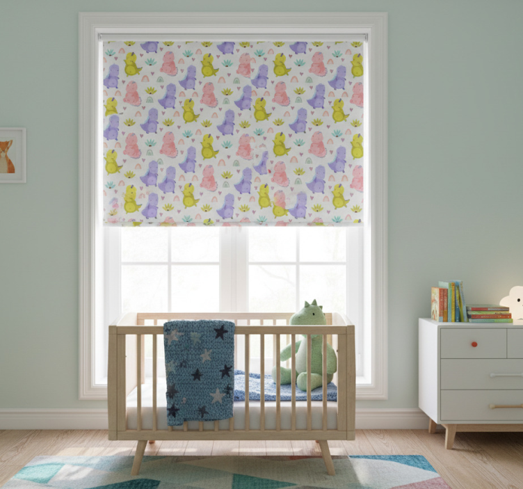 Rolgordijn kinderkamer kleurrijk dinosaurusschema