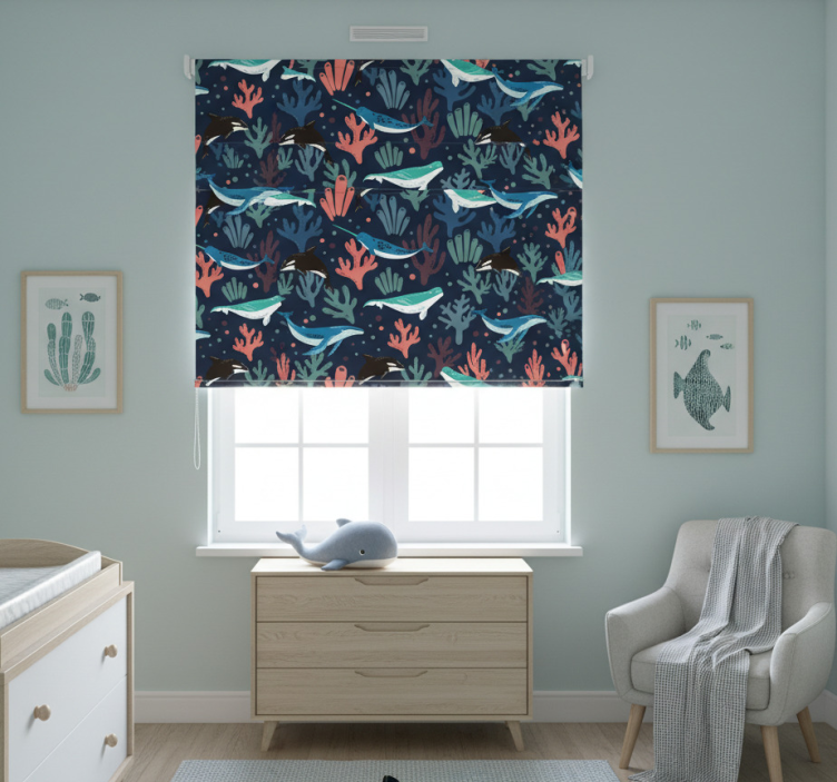 Breng een vrolijke sfeer in de kinderkamer met ons rolgordijn kinderkamer levendige zeedieren op blauwe achtergrond. Dit prachtige ontwerp toont een onderwaterwereld vol levendige zeedieren, van kleurrijke vissen tot speelse dolfijnen, op een rustgevende blauwe achtergrond. Het visuele aspect van dit rolgordijn maakt het niet alleen functioneel, maar ook een echte eyecatcher die de fantasie van uw kind prikkelt!