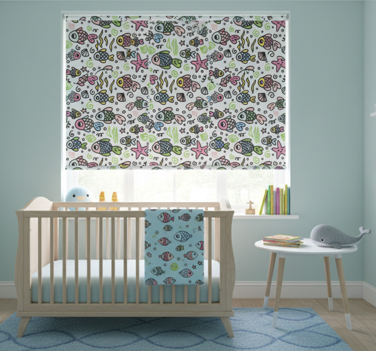 Rolgordijn kinderkamer met multicolor vissen patroon
