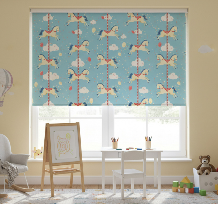 Rolgordijn kinderkamer met paardenrit patroon