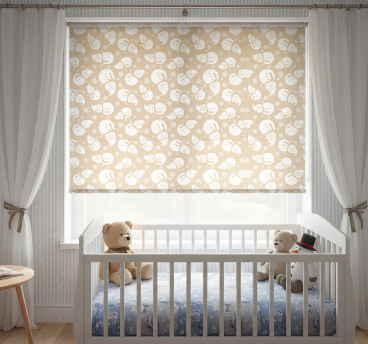 Rolgordijn kinderkamer met veel sneeuwman gezichten