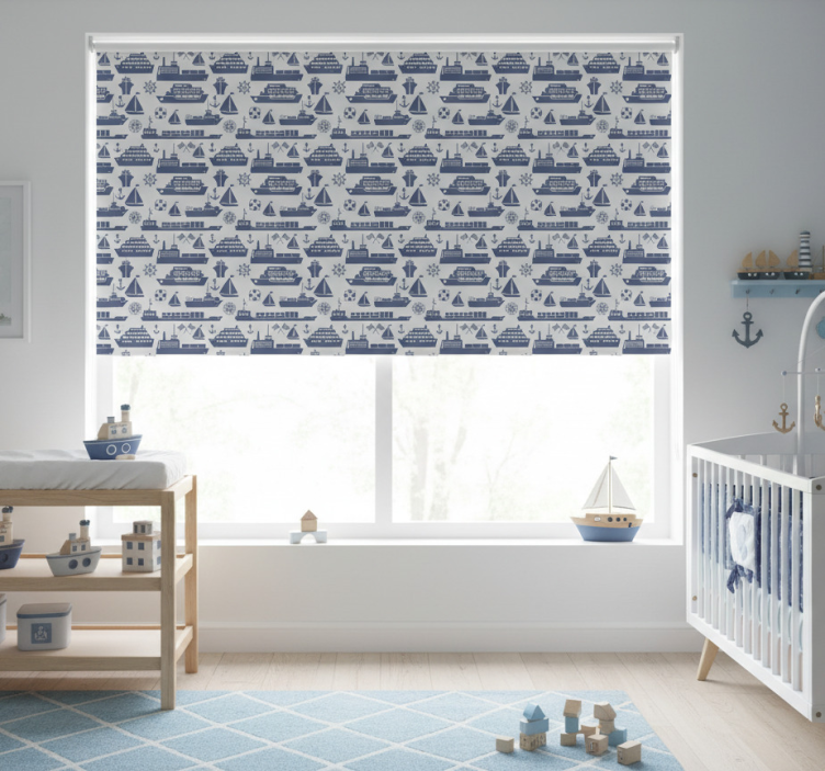 Rolgordijn kinderkamer met verschillend blauw botenpatroon