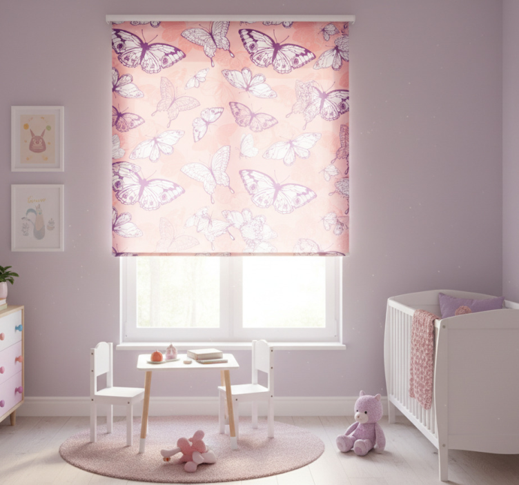 Referentienummer: E6864Rolgordijn kinderkamer paars en roze vlinderpatroon