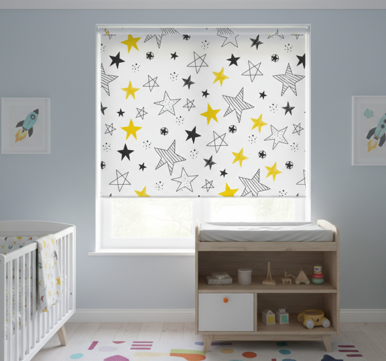 Een rolgordijn kinderkamer rock-'n'-roll sterren rolgordijn kinderkamer is niet alleen functioneel, maar ook een geweldige decoratieve toevoeging aan de kinderkamer. Het brengt een speelse sfeer in de ruimte en stimuleert de creativiteit van uw kind. Door de unieke sterrenprint en het rock-'n'-roll thema wordt de kamer een plek waar dromen tot leven komen. Dit rolgordijn zorgt ervoor dat de kamer er niet alleen mooi uitziet, maar ook comfortabel aanvoelt, perfect voor het creëren van een gezellige omgeving voor uw kleintje!