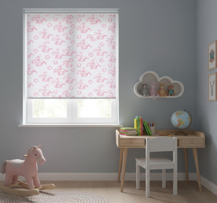 Rolgordijn kinderkamer roze cowboypaardenpatroon