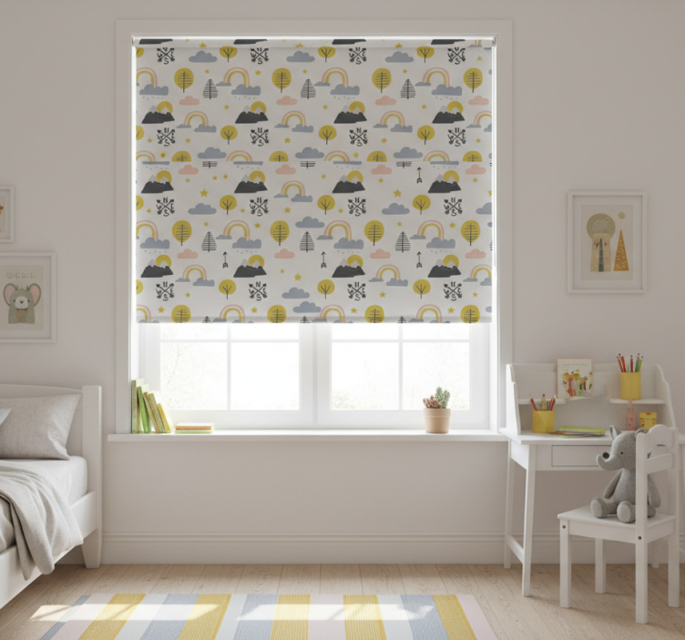 Referentienummer: E6807Breng de natuur naar de kinderkamer met ons rolgordijn kinderkamer speelse natuurscène! Dit prachtige rolgordijn toont een levendig en speels ontwerp dat de fantasie van elk kind prikkelt. Met vrolijke kleuren en een schattige natuurscène creëert het een warme en uitnodigende sfeer. Dit rolgordijn is niet alleen een visueel hoogtepunt, maar ook een functioneel element dat privacy biedt en de kamer beschermt tegen fel zonlicht.