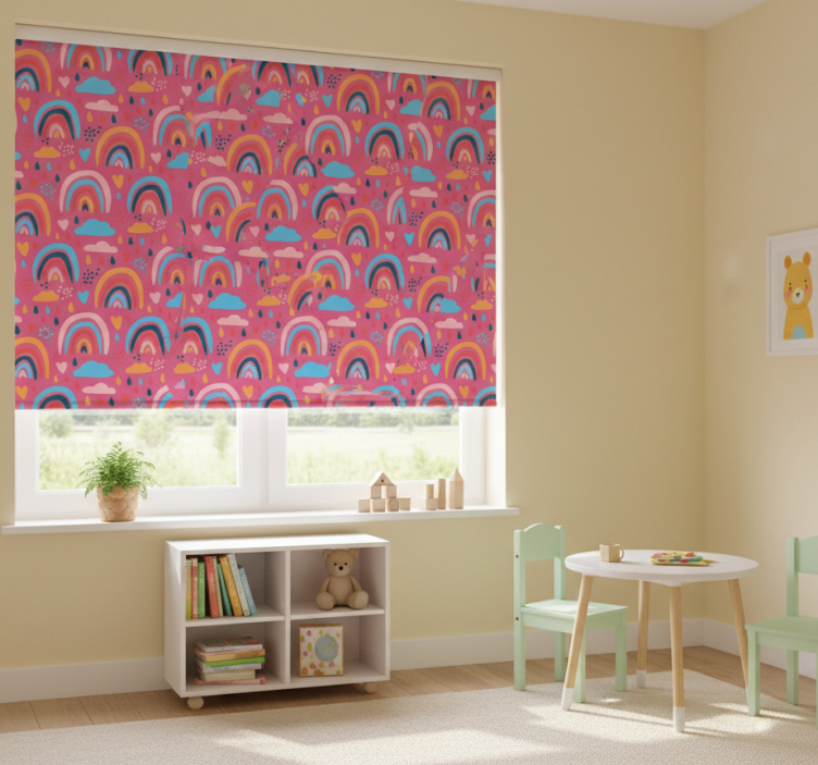Rolgordijn kinderkamer speelse regenboogpatronen